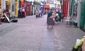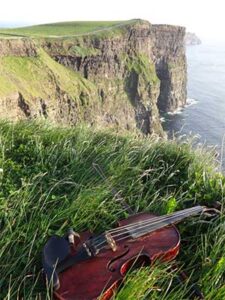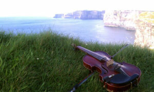 There were 4 fiddlers, 2 flutes, tenor banjo, penny whistle and guitar. I was amazed at how different the fiddle style was than what I’ve heard elsewhere. You could really hear the similarity from Appalachian music with the double stop style. Also they held the bow about 4 inches up from the frog (bottom of bow), which gave a unique sound; and they put the neck in the palm of the hand so no need for the shoulder rest. I was inspired to write a piece called Cork town Reel that is based on this sound. (Cork Town Medley: Sin É / Mishka / Fiona’s Field was released later in 2013 on Traveler’s Onward Journey album)